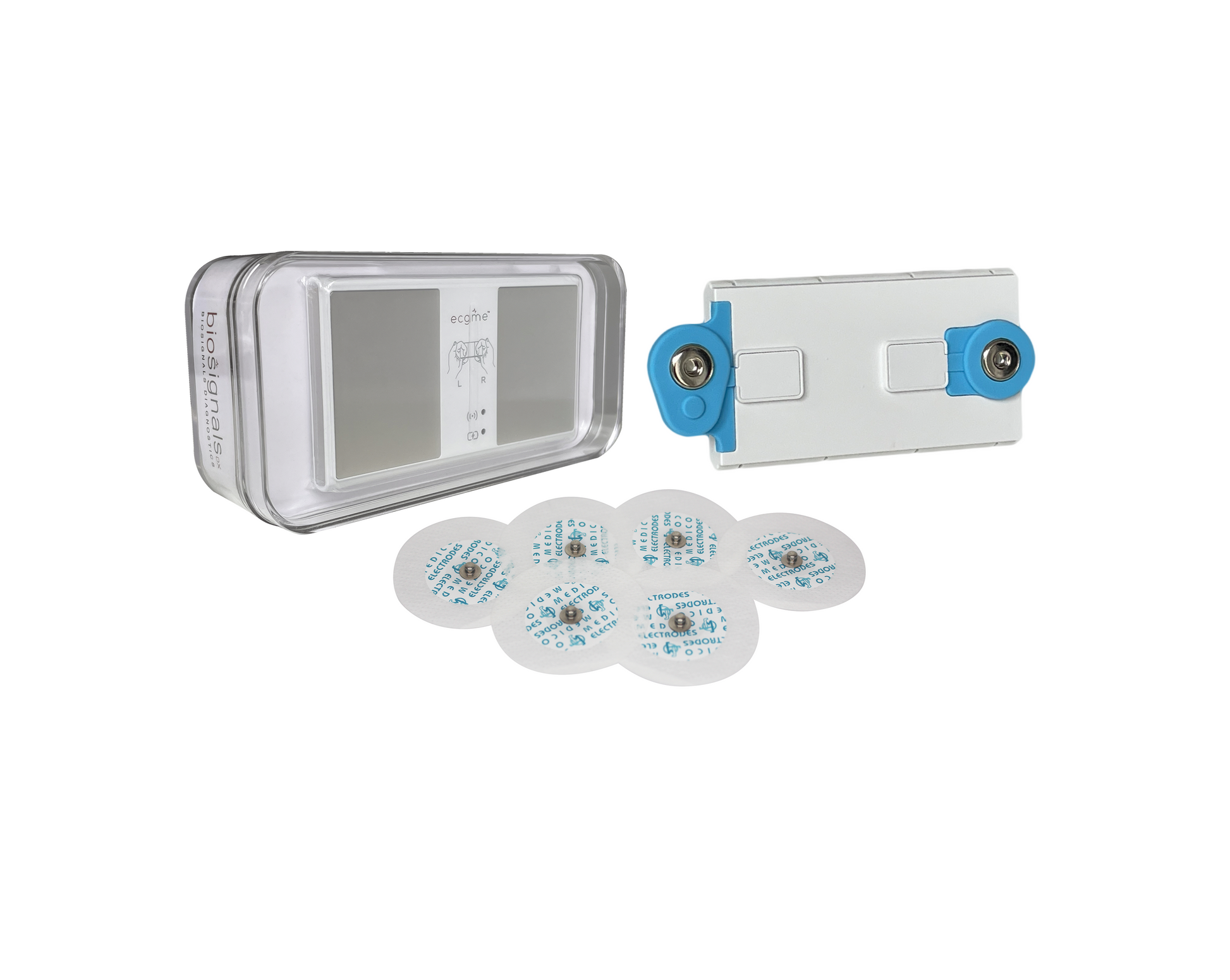 "ecgme" is a small hand-held device, the size of a credit card for measuring your ECG, and connects to our mobile phone app via Bluetooth.